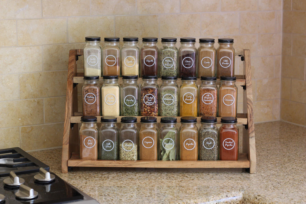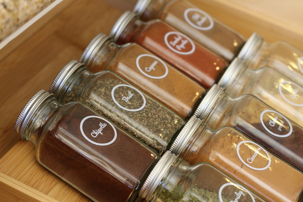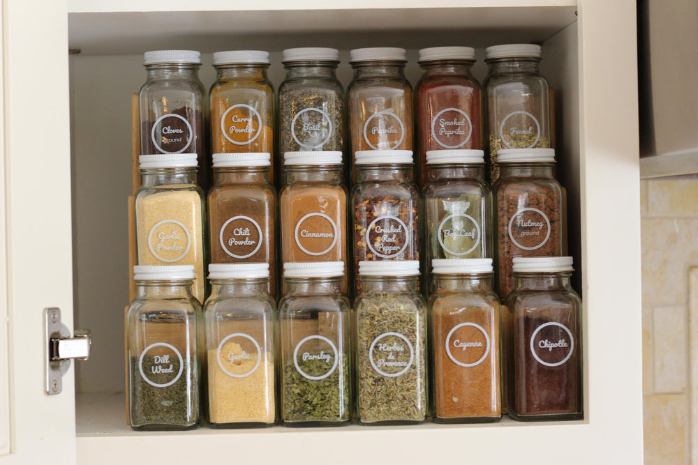 My spice cabinet has been driving me crazy for quite some time. I decided on these spice jars because they were economical, simple, clean and classic looking. I redid all of my spice collection and wondered why I didn't get around to doing this sooner.